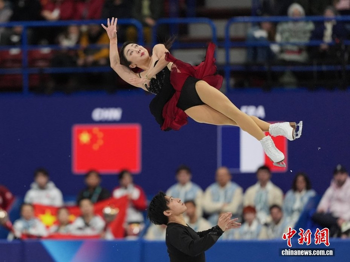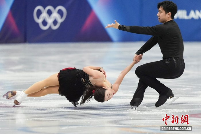 当地时间2月6日,米兰冬奥会花样滑冰团体赛在米兰滑冰馆开赛,双人滑短节目比赛中,北京冬奥会冠军、中国组合隋文静/韩聪第一顺位出场,获得65.37分。中新社记者 蒋启明 摄