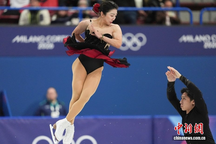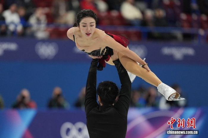 当地时间2月6日,米兰冬奥会花样滑冰团体赛在米兰滑冰馆开赛,双人滑短节目比赛中,北京冬奥会冠军、中国组合隋文静/韩聪第一顺位出场,获得65.37分。中新社记者 蒋启明 摄